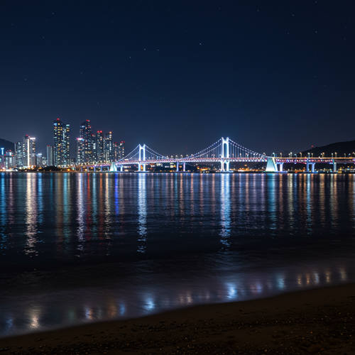 광안리 해변은 밤에 더욱 아름다운 해변으로, 광안대교의 반짝이는 불빛이 수평선 위에서 장관을 이뤄요. 토요일에는 한국 최대 규모의 드론 쇼인 '광안리 M 드론 라이트 쇼'를 감상할 수 있어요.