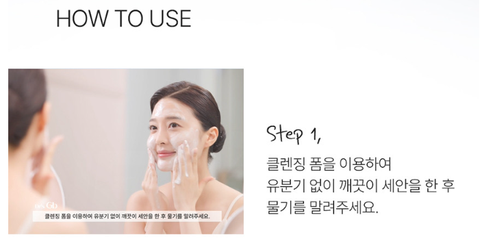 - 세안 후 토너로 피부 결을 정돈한 후, 적당량의 크림을 얼굴 전체에 고르게 도포합니다.